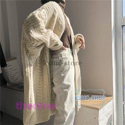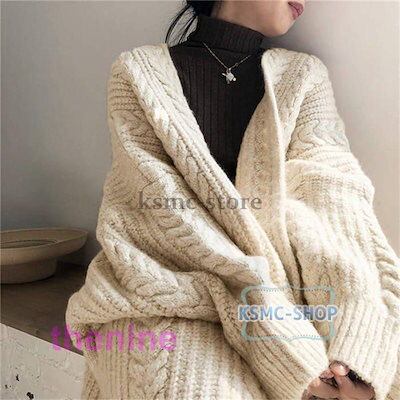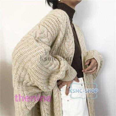 ニットカーディガン ロングカーディガン レディース ドルマンスリーブ ケーブル編み セーター コート 羽織 秋 冬 防寒 厚手 無地 大きいサイズ 体型カバー