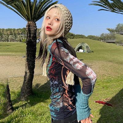 2024 春夏 女度を格上げ tシャツ ファッション トップス ショート 薄手 韓国系 長袖 薄手 フィット プリント レイヤード 重ね着 肌見せ 女っぽハイフレンチタイト レディース T | Jeannede ジャンヌデ