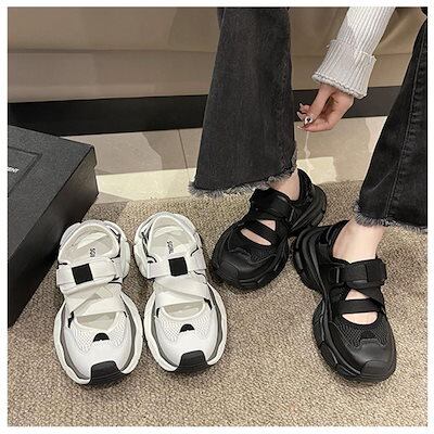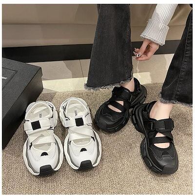 2024春夏 スニーカーサンダル プラットフォーム 靴 美脚 厚底 脚長 スタイルアップ カジュアル 韓国っぽ コンフォート フレンチシューズ ストリート レディースファッション