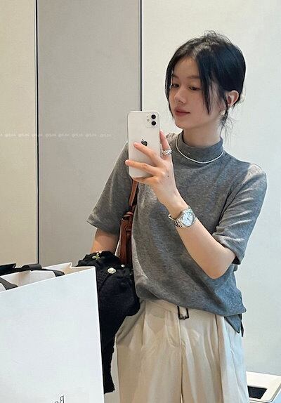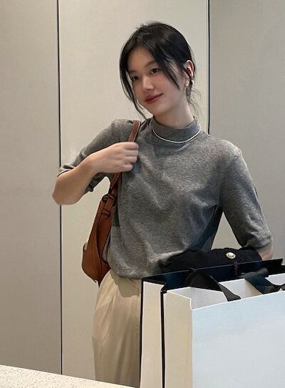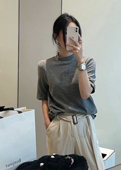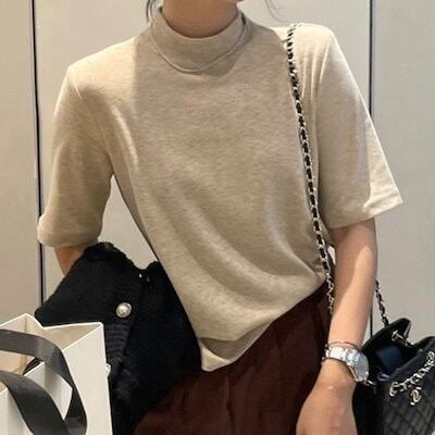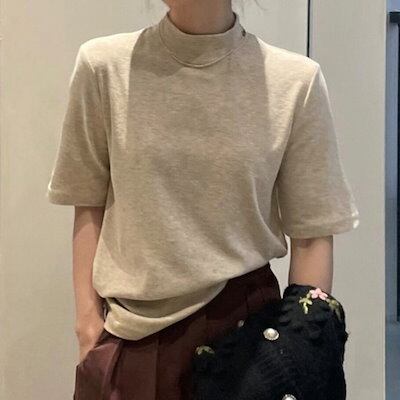 2024 春夏トップス Tシャツ 半袖 スタンドカラー モックネック ゆったり 春 黒 かわいい おしゃれ カジュアル シンプル 韓国ファッション レディース お出かけ