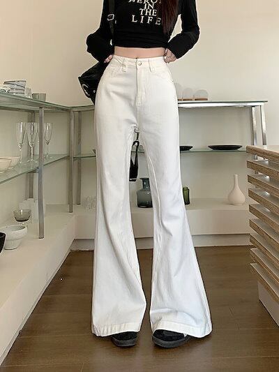 2024春夏パンツ デニム ジーンズ ワイド ストレート ハイウエスト 脚長効果 美脚効果 細見え 春 白 ホワイト カジュアル おしゃれ かわいい シンプル 韓国ファッション レディース お出かけ