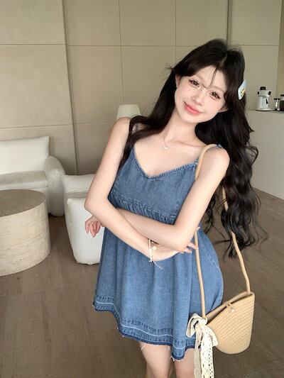 2024春夏ワンピース ミニ丈 デニム生地 ゆったり ノースリーブ キャミソール Aライン ハイウエスト かわいい カジュアル おしゃれ 夏 韓国ファッション レディース お出かけ