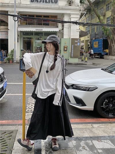 2024春夏トップス Tシャツ 長袖 ラウンドネック ゆったり 細見え かわいい キュート おしゃれ 韓国ファッション レディース お出かけ