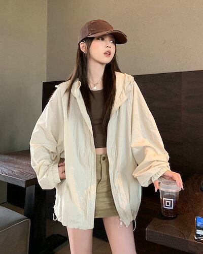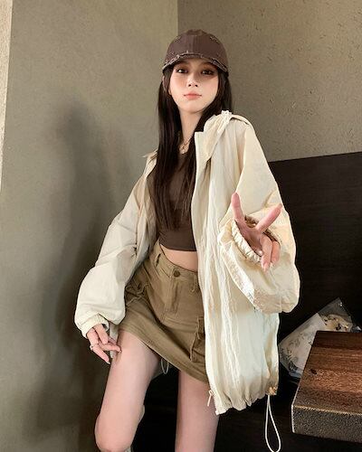 2024春夏 ショート かわいい フル ブルゾン トップスアウター ショート丈 スタンド ショートお出かけハイストリートアウター長袖セクシートップスカジュアルファッションお出かけ 秋トラック | Jeannede ジャンヌデ