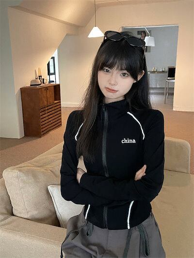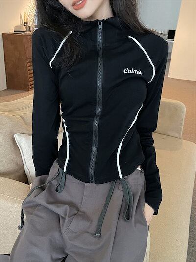 2024春夏 アウター ショート ブルゾン かわいいフル ブルゾン トップス ハイスタンド ショートストリートレディース長袖 カジュアル ファッションお出かけトラック