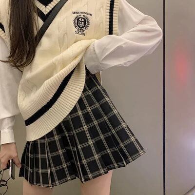 2024 春夏 セットアップ ショート丈 トップス ベスト+シャツ+スカートの3点セット 学生 ニット 2点セットスカート 高校生 制服