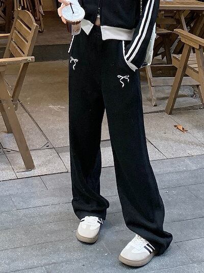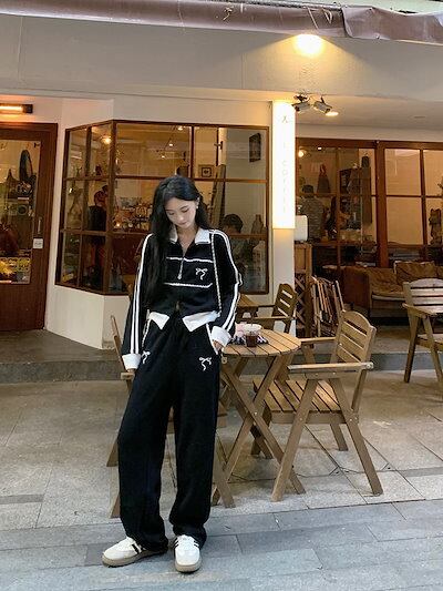 2024 秋 上下2点セット トップス お出かけ韓国 羽織り ショート丈フルラウンドヘムサイズ丈ボトムス ストレート系冬 ゆったりレディースシルエット スタイルアップワイドお出かけトラック