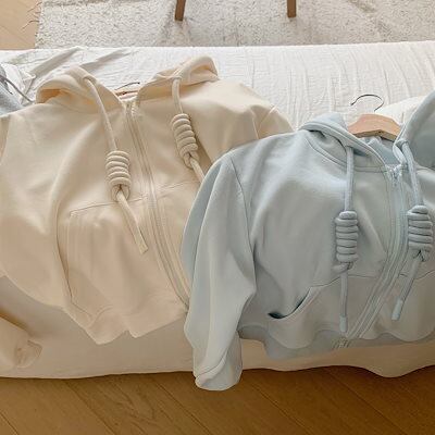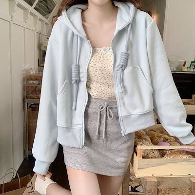 2024春夏 かわいい 普段使い パーカー ショート丈トップスフード付き羽織りスタイルアップ色っぽ女っぽきれいめリブ大人っぽお姉さん上品ゆったりフェミニンカジュアル オシャかわファッションお出かけ秋