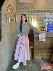 トップス レディース ノーカラー 長袖 ショート丈 ニット カーディガン グレー セーター 羽織 秋 リブニット リブ編み カジュアル 可愛い おしゃれ シンプル 韓国 | Jeannede ジャンヌデ