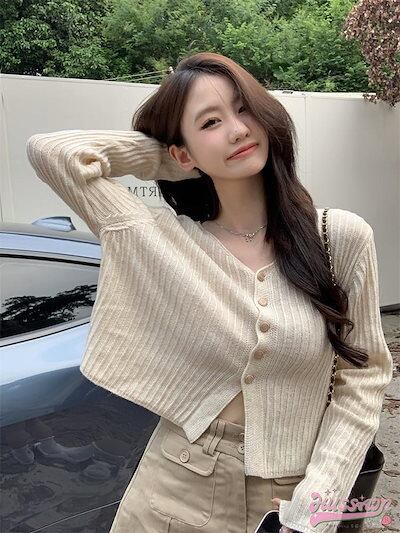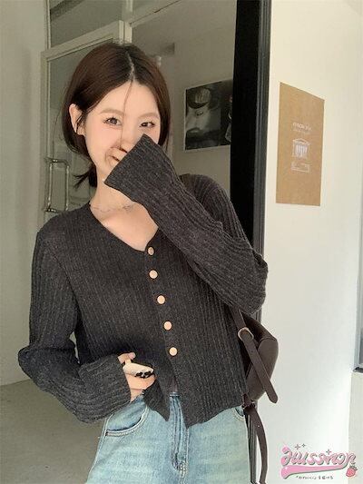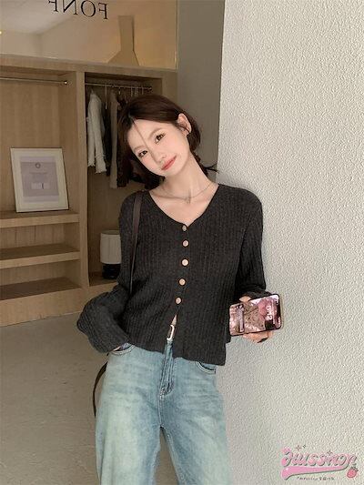 Vネック長袖セーター レディース 長袖 アウターカーディガン 韓国ファッション 可愛い シンプル 大人