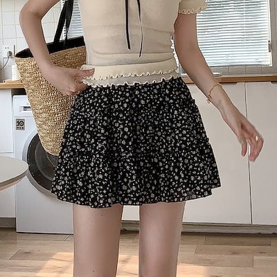 花柄ハイウエストスカート レディース 夏フレンチスイートショートスカート レースケーキチュチュスカート
