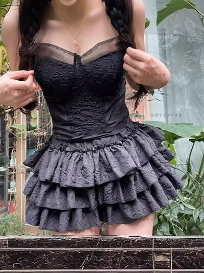 2024春夏スカート ミニ丈 ハイウエスト 脚長効果 美脚効果 細見え かわいい おしゃれ キュート フレンチ 甘め カジュアル 春 黒 白 韓国ファッション レディース お出かけ