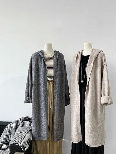 カーディガン レディース ニットパーカー 秋冬 長袖 フード付き ニット ロング カーディガン 冬物 ニットアウター アウター コート 秋コート ボリューム感 羽織り ルーズ フード 無地 きれいめ