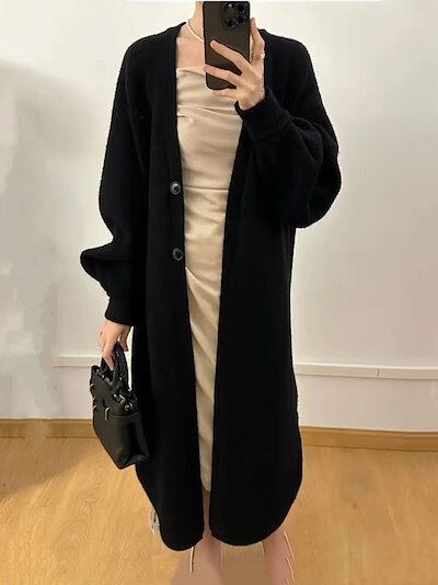 カーディガン ニットカーディガン レディース ロングカーディガン ロング丈 羽織り アウター 長袖 Vネック コーディガン セーター 前開き 無地 シンプル カジュアル きれいめ かわいい 大人 秋