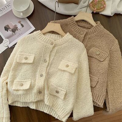 カーディガン ニット ショート丈 トップス レディース ショート丈 春 秋 冬 ふわふわ 長袖 ノーカラー もこもこ ツイード風 セーター ニット 羽織り 柔らかい アウター カジュアル ニットカーデ | Jeannede ジャンヌデ