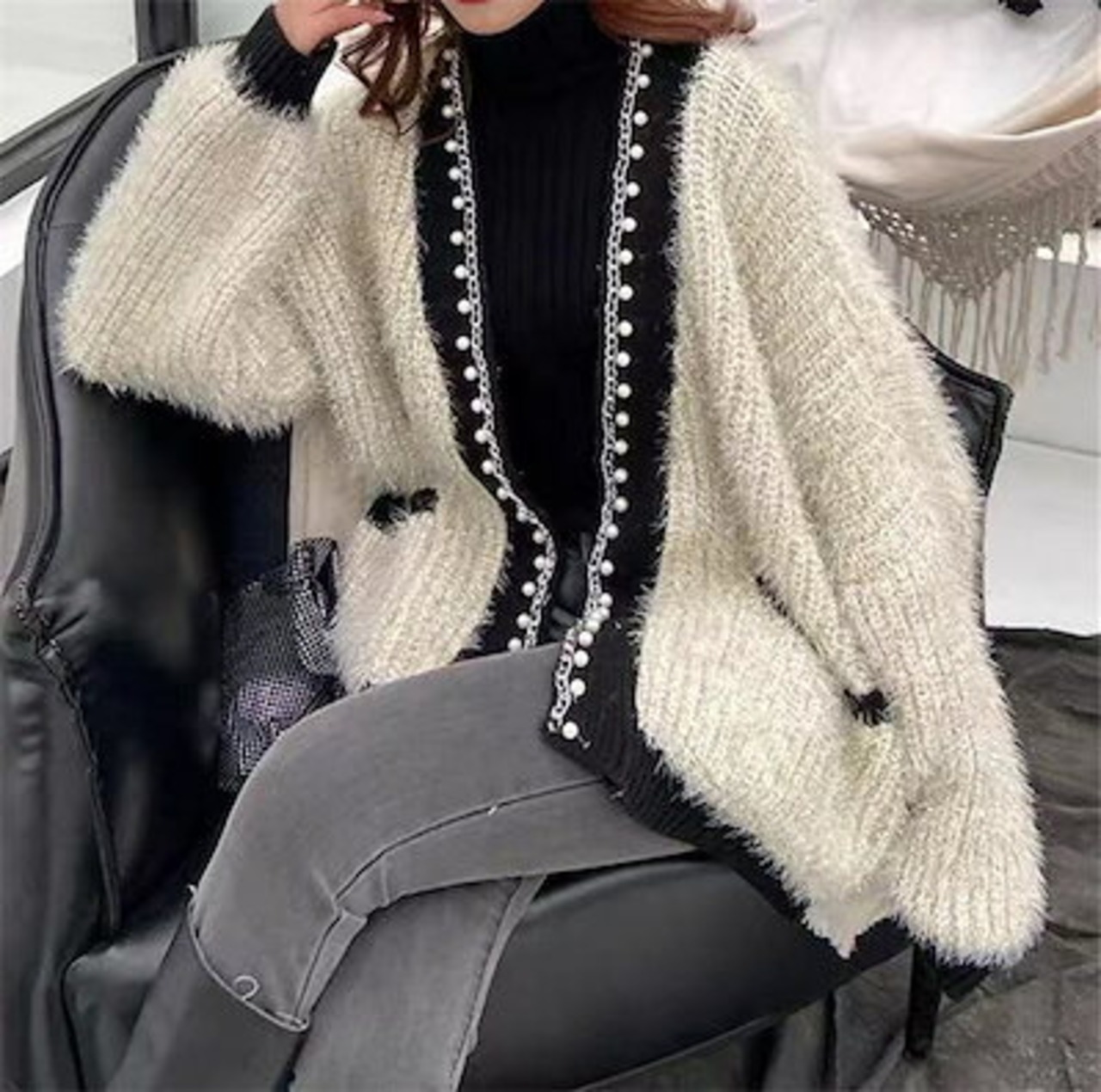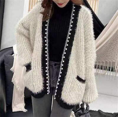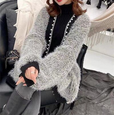 ニットカーディガン レディース カーディガン ショート丈 パールボタン パール付き ニットカーデ 長袖 ショート丈 ニット トップス ゆったり 上品 オフホワイト グレー きれいめ カジュアル オフィ | Jeannede ジャンヌデ