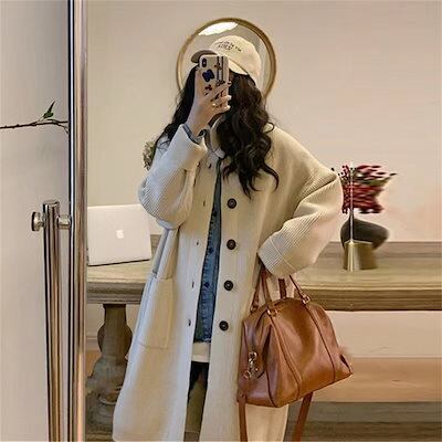 ニットカーディガン カーディガン レディース ニット 羽織り ロングニット ロングカーディガントップス セーター ハイネック 前開き ロングアウター シンプル コート カジュアル ゆったり 体型カバ