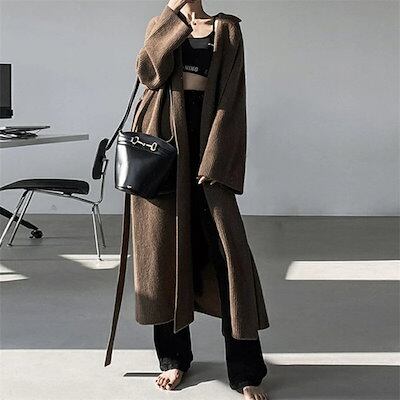 ロングカーディガン ニット チェスターコート レディース ニットカーディガン アウター 大きいサイズ ゆったり 前開き ベルト付き トップス ゆるカーデ 羽織 大人 暖か 厚手 通勤 キレイめ ゆった