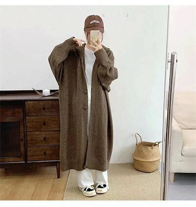 ニットロングカーディガン フード付き レディース 春秋 ニットカーディガン ロングコート アウター 大きいサイズ ゆったり 前開き カーディガン トップス ゆるカーデ 羽織 もこもこ 暖か 厚手 ロ