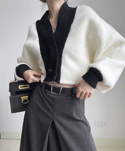 ニットカーディガン レディース 秋 セーター 秋冬 長袖 Vネック ショート丈 リブニット コート ゆったり 前開き セーター オフィス 通勤 きれいめ 冬 秋 シンプル かわいい 春 秋冬 カーデ