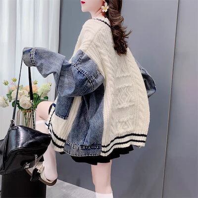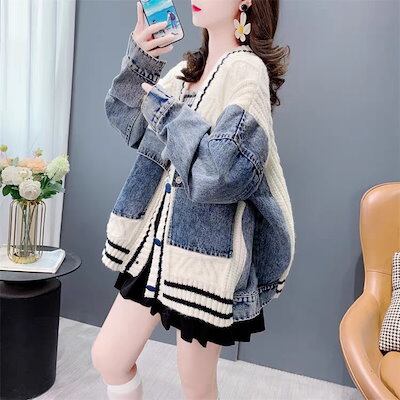 人気なリプニット ベーシックニット 冬アウター デニム AWアウター 切り替え カーディガン 裏起毛 ダウンジャケット アウター ロングコート ダウンジャケット ジャケット コート レディース アウタ