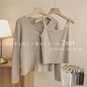 アンサンブル カーディガン レディース トップス ニットキャミソール サマーニット ニットアンサンブル ニット キャミソール セットアップ セットアイテム 長袖 コーデ ベーシック 無地 薄手 伸縮 | Jeannede ジャンヌデ