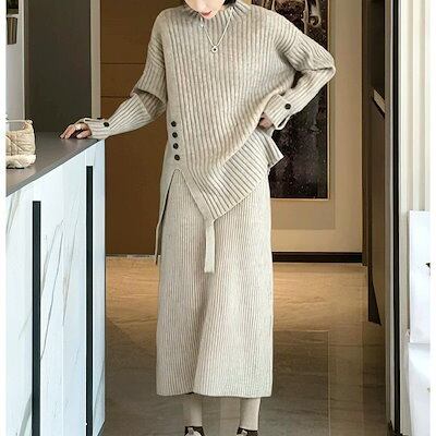 秋冬の新作 ドレス 軽やかな大人 ニット+スカート セットアップ けだるさ風 2点セット レディースファッション