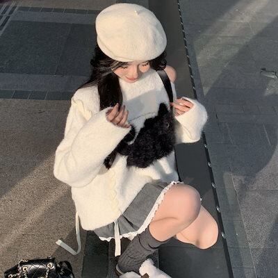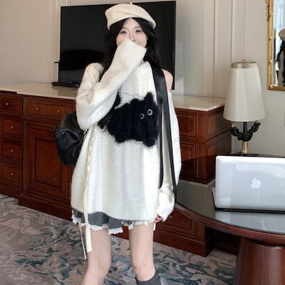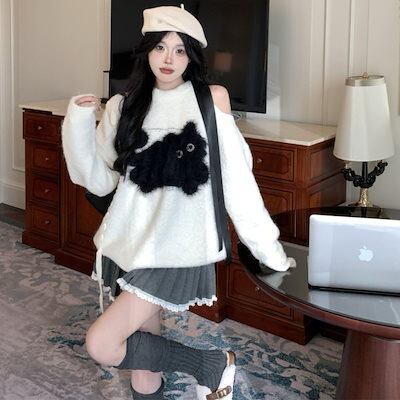 レディースファッション 肩出しデザイン感 2024秋冬新作 アウターセーター+スカート セットアップ 通勤ins ゆったり 2点セット