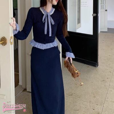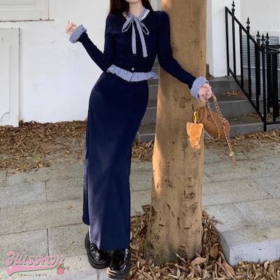 【2点セット】貴方の視線を独り占めしたいわたしのコーデ カジュアル ショートトップス 長袖 ロングスカート ファッション ゆったり カジュアル フェミニン 色っぽ きれいめ 大人っぽ 秋冬フレンチ型