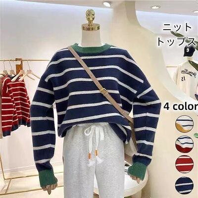 人気なリブニット ベーシックニット カシミヤタッチ 日韓ファッション 秋冬冬ニットトップス シンプルストライプ セーター レディース 怠惰な風百掛け ニットセーター30%までに制限