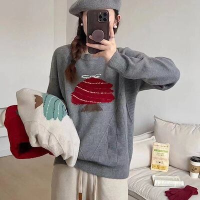 クリスマスセーター レディース 冬新作 和風 コントラストカラー クリスマスツリー ジャガード 雰囲気 年齢感軽減 かわいいセーター 女性用