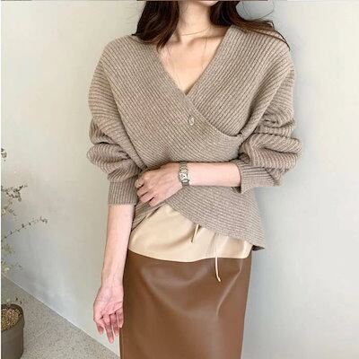 ニット レディース リブニット 深Vネック トップス プルオーバー ニットセーター 長袖 キレイめ 無地 秋 冬 ニットウェア 洗える セーター シンプル オシャレ 春 秋 冬