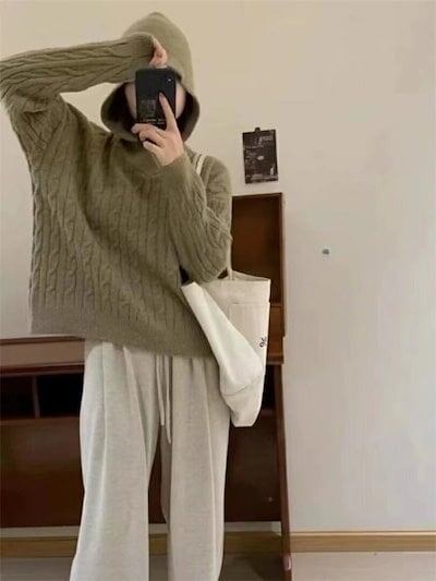 ニットセーター レディース Vネック ニット セーター プルオーバーニットセーター プルオーバーセーター プルオーバー フード付き カジュアル ゆったり 快適 トップス カットソー 春 秋冬 秋 冬