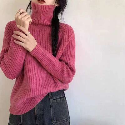 ニット タートルネック レディース リブ リブニット セーター 厚手 トップス ニット 長袖 無地 トップス リブ れいめ ニットセーター ハイネック セーター 体型カバー ハイネック ビッグシルエッ