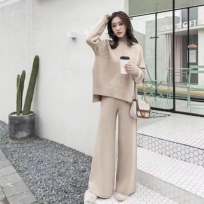 韓国ファッション カジュアル セットアップ 2点セットスウェット レディースウェア ジャージ 上下セットスカート+ニット長袖