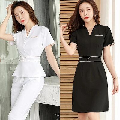 2024 楽ちんセットアップ 大人気 ユニフォーム エステ サロン通勤 女性 制服 美容院通勤 ワンピース半袖 七分袖 ジャケット 上下セット エステ制服 レディース