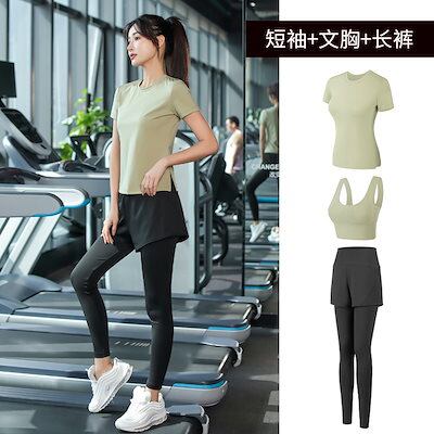 ファッションヨガウェア セットアップ ヨガトップス スポーツウェア 3点セット フィットネス トレーニングウェア 吸汗 ランニングウェア 速乾 おしゃれ 卒業式 レディース 上下セット 運動セット