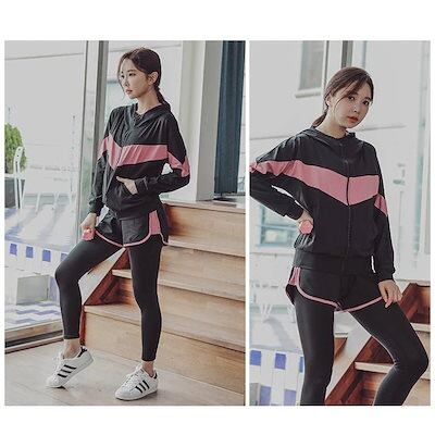 ファッションヨガウェア セットアップ ヨガトップス 5点セット トップス レギンス バイカラー おしゃれ かわいい ベスト レディース 上下セット 運動セット