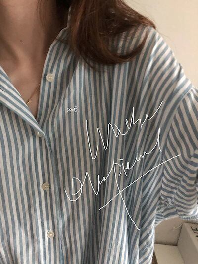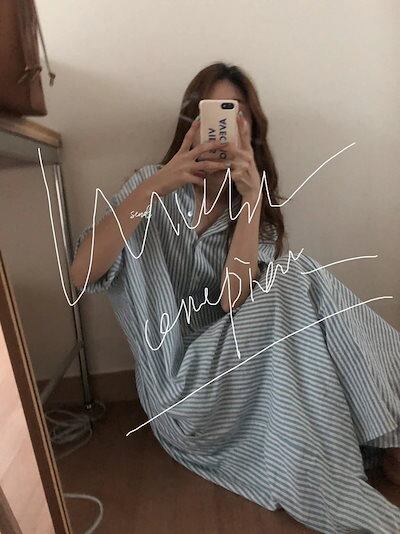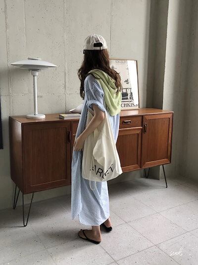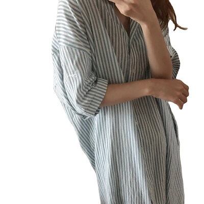 スラウチー/ウインドストライプ/シャツ/ファンシー/ルーズ/ロング/シャツワンピース/レディース カップ 付きインナー