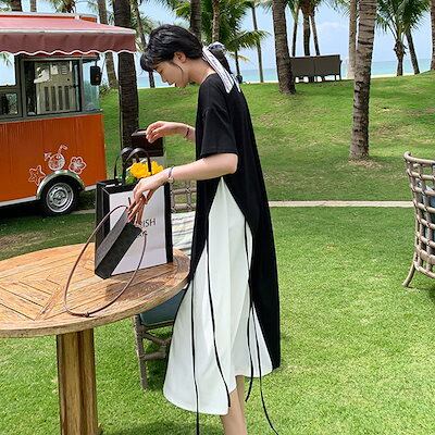 夏 新作 Tシャツ ワンピース 半袖 ワンピース 切り替え 高級感 気質 百掛け 着やせ 大きいサイズ ゆったり