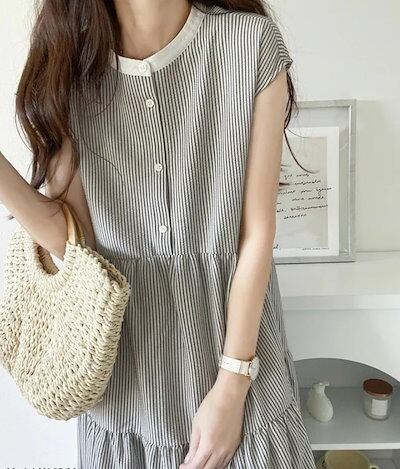 ヘビロテ! キャミワンピ リネンワンピース ワンピース ワンピース 夏 韓国ファッション ロングワンピース ストライプ ワンピース レディース 百掛け シャツワンピース母の日
