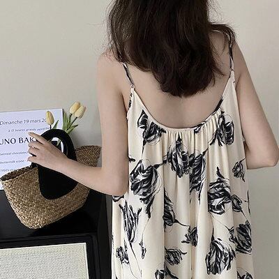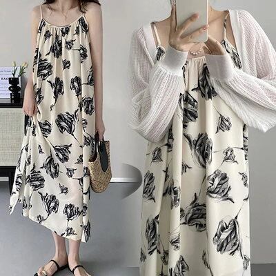 ヘビロテ! キャミワンピ 日系レトロ 花柄 キャミワンピース ノースリーブ ロングワンピース 韓国ファッション 花柄ワンピース 夏 着痩せドレス母の日