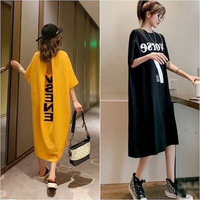 ヘビロテ! キャミワンピ 夏 韓国 ワンピース Tシャツ 綿 ゆったり スリット バックレス デザイン お肌に優しい 大きいサイズ ラウンドネック 着やせ カジュアル 部屋着