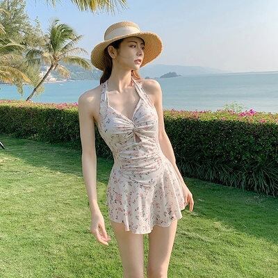 ひんやりボトムス カップ付きインナー 水着 水着 レディース 体型カバー 新作 着やせ 水着 韓国ファッション