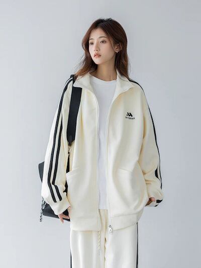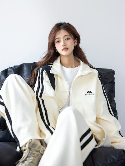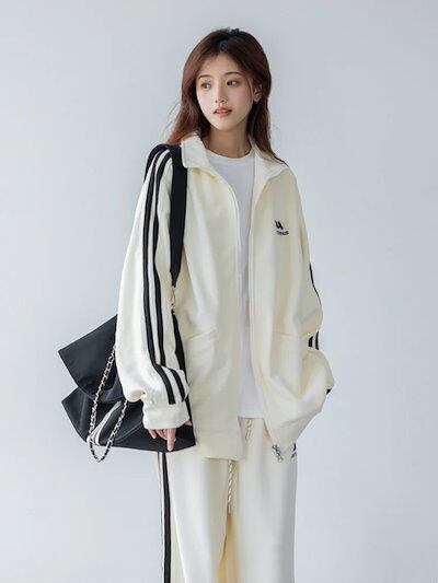 2024 秋冬 2点セット トップス ハイネック スタンドネック 羽織り ショート丈 フルパーカー ルーズ サイド上下ボトムス ストレート系冬 ゆったりサイズワイドシルエットリラックストラック