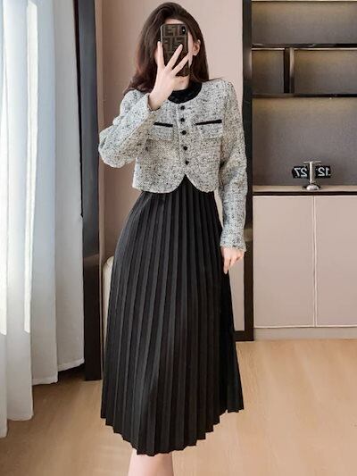 セットアップ セット レディース 秋冬 新作 ショートジャケット ワンピース 2セット