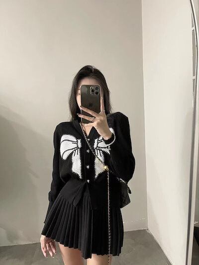 レディースファッションデザイン感 2024秋冬新作 優しさ風Vネックトップス ニットカーディガン +スカート セットアップ 通勤ins 大きいサイズ 2点セット