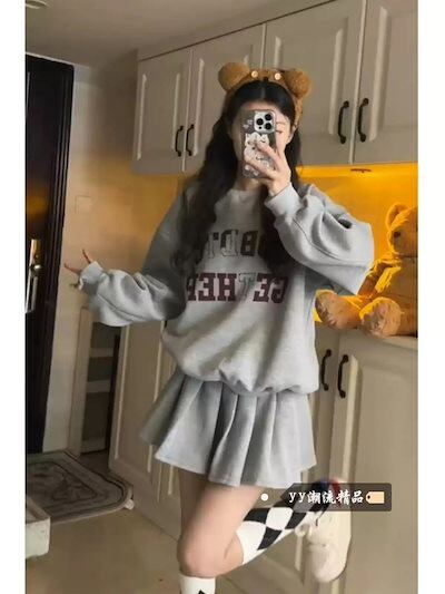 2点セット 普段使い 長袖シャツ トップス ミニスカート ショート レディース あたたかい かわいい シルエット風きれいめサイズ秋冬ゆったり ファッションダブル大人可愛い