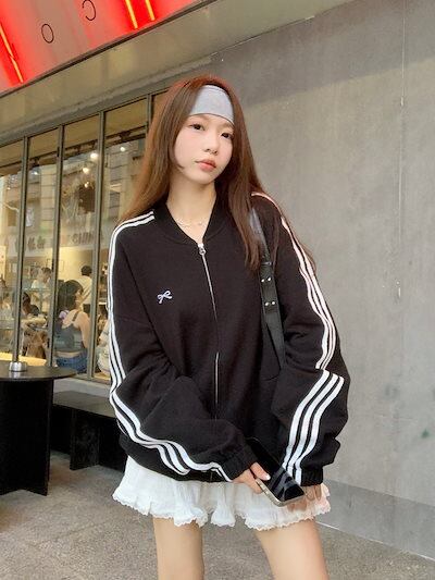 2024 秋冬 韓国 かわいい レディース アウター ブラックブルゾンお出かけ異素材MIX 長袖防寒セクシー ボールカラーシルエットトップスサイド冬カジュアルファッション系サイズお出かけフル丈トラック