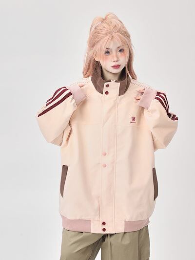 2024 秋冬 韓国 かわいい レディース ハイネックスタンドネックアウターブルー ブラックブルゾンお出かけ長袖セクシーシルエットトップスサイド冬カジュアルファッション系サイズお出かけフル丈トラック